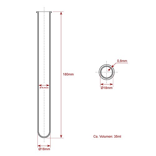 Tubi di vetro: 180 X ø18 mm | Volume: 35 ML | Caratteristiche: fondo, rotondo, con bordo, Chiara, per alimenti