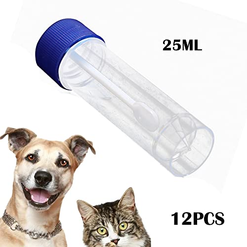 Provette per feci con Cucchiai 12 Pezzi Provette di Plastica Trasparente 25ml con Coperchio Provetta per Cacca di Cane Provette per Feci di Cane per la Raccolta Cani Gatti per Esperimento Scientifico
