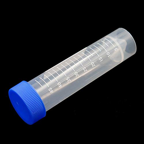 Provette Plastica 50ml, Provette per Centrifuga Fondo Piatto, Tappo Blu Senza Perdite Trasparente Provette da Laboratorio - 50 Pezzi