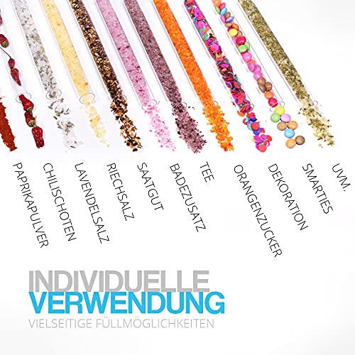 Set:25 robuste provette in plastica con tappo colorato, alta qualità, prodotte in Germania.