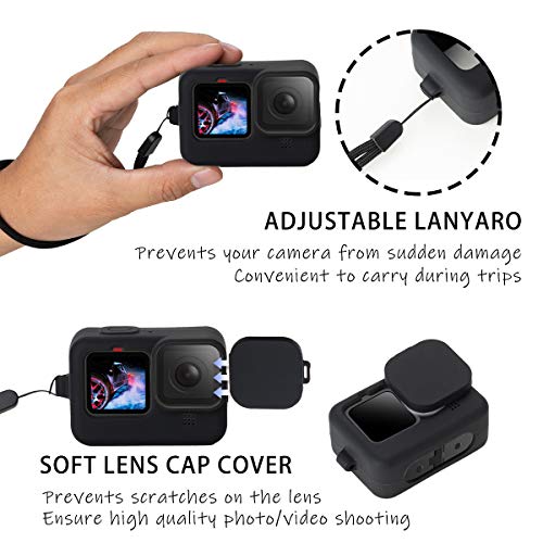 Provo Kit Accessori per GoPro HERO9 Black Custodia Protettiva in Silicone con Cordino + 3pz Proteggi Obiettivo in Vetro Temperato + 2pz di Protezione Tappo Copri Obiettivo per GoPro 9 Black