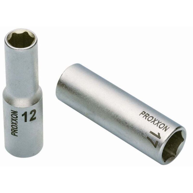 Chiavi a bussola profonde 1/2 15 mm PROXXON modello 23360 Chiavi a bussola lunghe 1/2" Per perni filettati sporgenti Prodotte in acciaio CrV Lunghezza totale 79 mm "