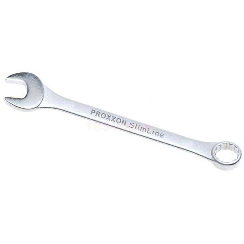 Chiave combinata SlimLine 14mm, forgiata in acciaio CrV, superficie temperata e bonificata contro la ruggine. Chiave a becco aperto da un lato e poligonale angolato di 15°dall'altro, consente una presa piu' stabile e sicura su ogni tipo di bullone, raggiungendo coppie di serraggio ben superiori alle norme DIN/ISO. Dimensione della chiave ben leggibile con marcatura al laser.