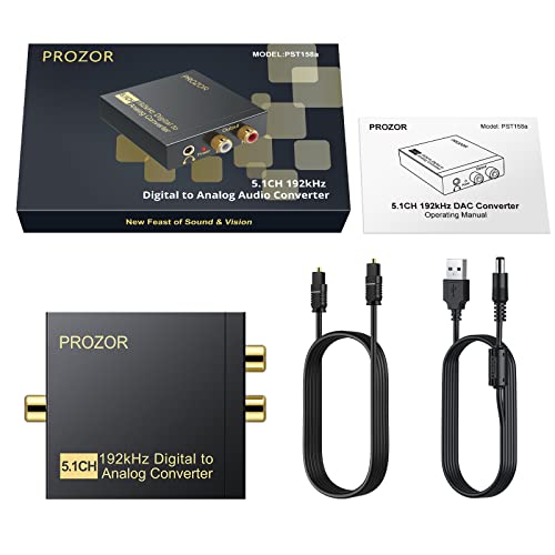 PROZOR DAC 192kHz Convertitore Digitale Analogico Supporta Controllo Volume da Coassiale Digitale SPDIF Toslink a Stereo Analogico L/R RCA da 3,5 mm Adattatore di Alluminio con 3ft Cavo Ottico