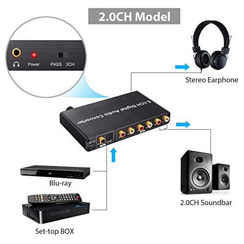 PROZOR 5.1CH Convertitore DAC Digitale ad Analogico 192KHz Volume Regolabile Dolby AC-3/DTS SPDIF Coassiale 2.0/5.1CH Input RCA 3.5MM Audio Output per Blu-ray DVD Apple/Android Player Sound System