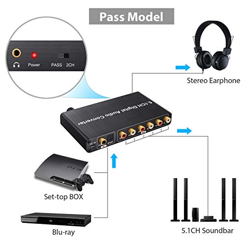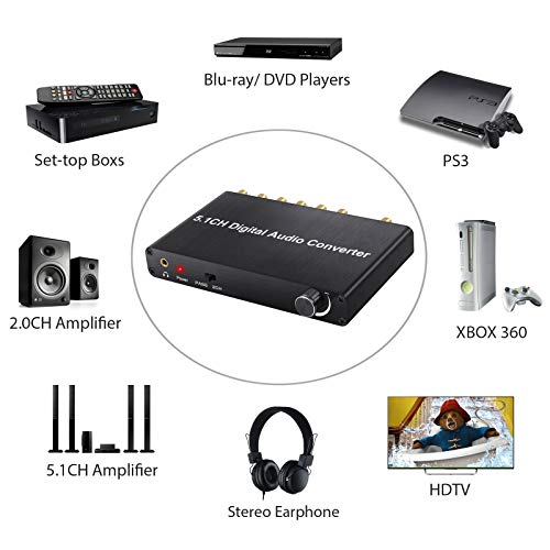 5.1CH Audio Decodificatore - Questo 5.1CH Audio Convertitore Può Convertire Segnale Digitale di Audio Cossiale/Toslink al Segnale Analogico di 5.1CH/2.0CH e 3.5mm Jack Audio. Tramite le Prese RCA Collecate ai Dispositivi Esterni ad Esempio Amplificatore si Può Godere l'Effetto di Dolly/DTS.