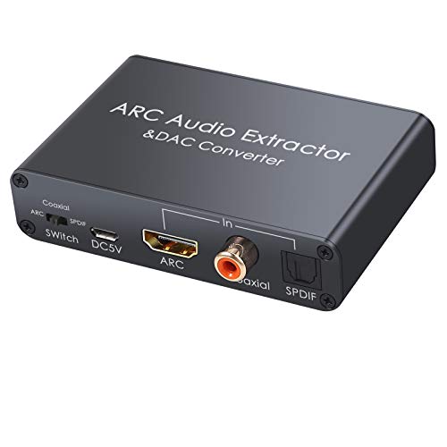 2 in 1 DAC e Estrattore ARC HDMI: Supporta Ingresso Audio Ottico, Coassiale, Ingresso HDMI ARC, Supporta Uscita Ottico e Coassiale e Jack da 3,5 mm e Stereo L / R. (Può Essere Emesso Contemporaneamente)