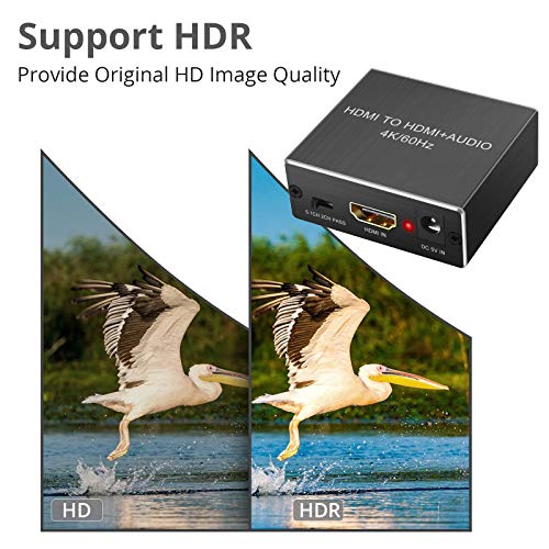 【Con la Funzione HDR】Questo HDMI 2.0 Audio Splitter Supporta un'immagine Reale ad Alta Dinamica, che Non Solo è Più Chiara, ma Può Anche Ripristinare il Vero Effetto Visivo Quando lo Schermo è Saturo. (Se Desideri Provare Effetti 4K @60 Hz (YUV 4: 4: 4) e HDR, Utilizza Cavi Certificati HDMI 2.0 (HDMI 19 + 1, 26AW) per Collegare Tutti i Dispositivi.