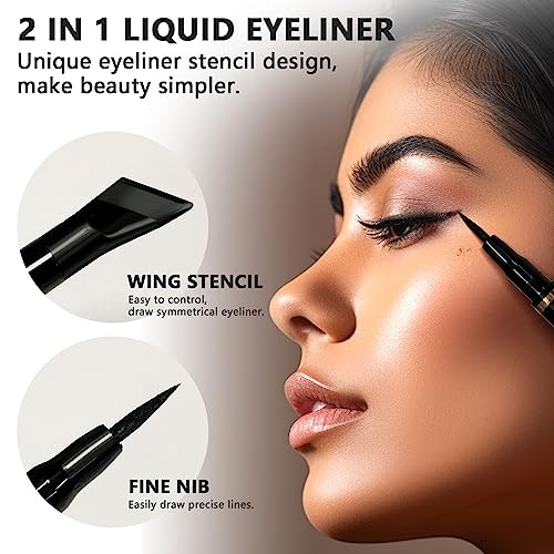 Prreal Eyeliner liquido 2 in 1 con eyeliner Stencil, penna eyeliner liquida, impermeabile e SmudgeProof Eyeliner con strumento per il trucco degli occhi, penna, 10 bianco