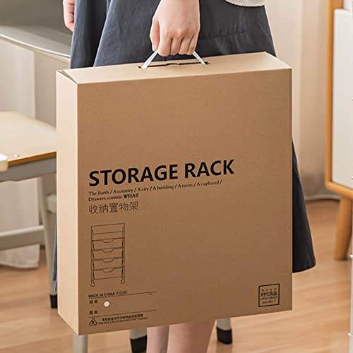 PRTECY Carrello per Libri su Ruote a 5 Livelli, Scaffale per Libri, Scaffale per Libri, Cartella di File, Organizer per Libri, per Studio, Ufficio, Soggiorno, Aula, Scuola(Beige)