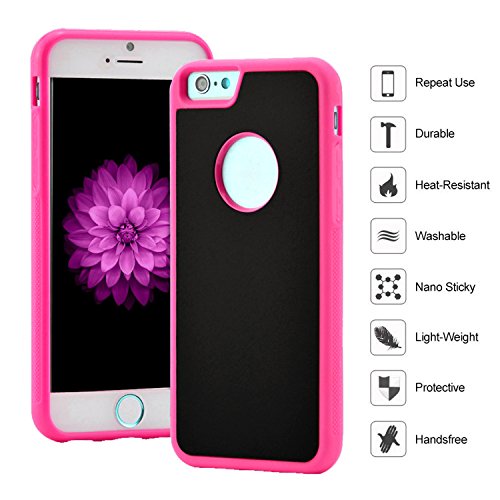 PRUNUS Selfie Stick Cover Telefono Senza l'Uso delle Mani Antigravità, Fantastico Quando Cucini/Ti Trucchi/ Ti Lavi i Denti/Sei in Bagno,regaliamo una pellicola di protezione del vetro rinforzato gratis (per Iphone 6/6s Plus (5,5”), Rosa)