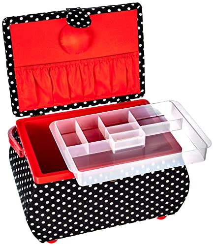 Prym 612246 Cestino da Cucito in Tessuto a Pois Neri con Bordo Rosso, Misura Grande, Cotone, Bianco e Nero, 32x20.5x20 cm