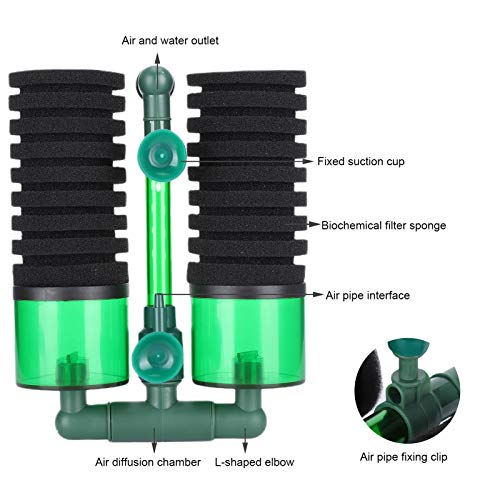 【Doppia funzione】 Le due spugne hanno una doppia funzione per stabilire un filtro biologico, fornire un'area più ampia e accelerare la velocità di circolazione e mantenere l'effetto pulente durante il processo di filtrazione.