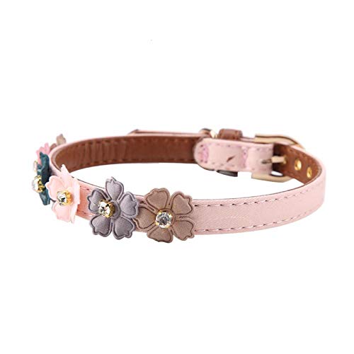 Pssopp Hffheer Collare regolabile per cani Pet Cute in pelle PU Daisy Flower Shape Puppy Collare decorativo per cani di piccola taglia media (S Rosa)