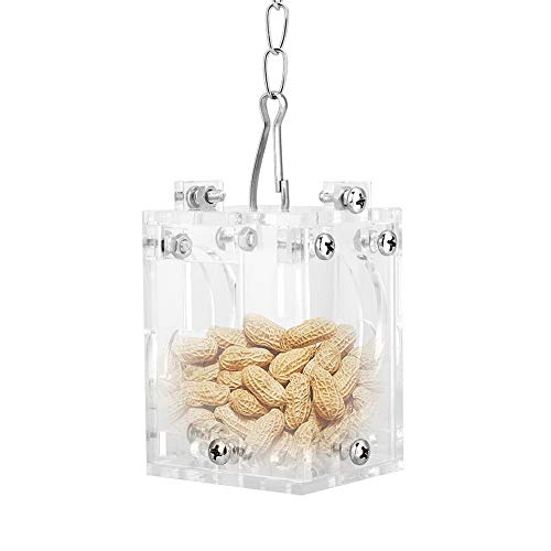 Facile da usare: mettere noci, frutta e altri alimenti che il vostro uccello ama nella scatola per beccare. È possibile vedere il cibo interno chiaramente dalla sfera trasparente, in modo da riempire.
