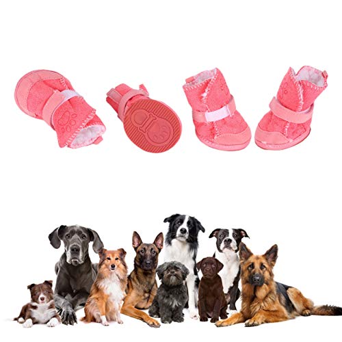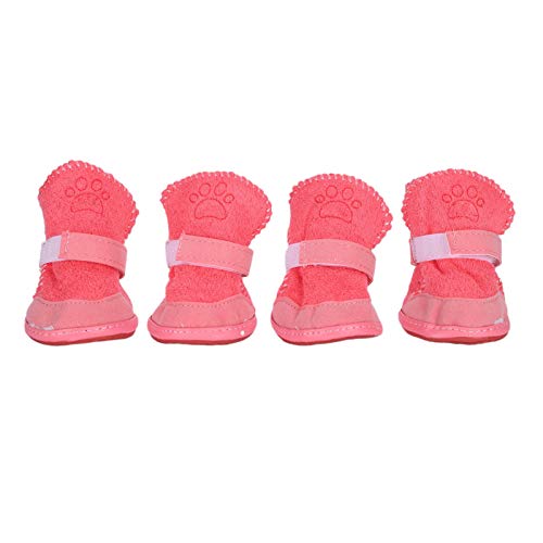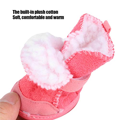 Pssopp Scarpe in Peluche per Cani Stivali per Cani di Taglia Medio-Piccola Gatti, Stivali protettivi per Zampe di Cane Caldi Invernali Fondo in Gomma Scarpe per Animali Domestici Antiscivolo(1-Rosa)