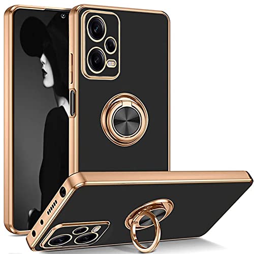 Ptny Cover Placcatura per Xiaomi Redmi Note 12 Cover con Anello, Ring Cavalletto Rotante a 360 Gradi, Ultra Sottile Antiurto TPU Silicone Morbido Protettiva Case per Redmi Note 12, oro nero