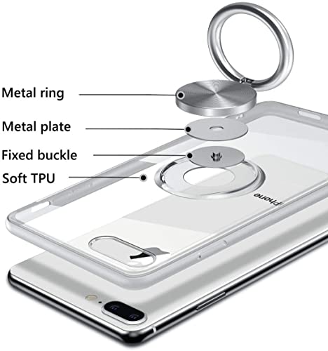 Ptny Custodia Trasparente Silicone per iPhone SE 2022/ SE 2020/7 /8 10 Cover con Anello, Cover con Cavalletto Rotante a 360 Gradi, Ultra Sottile Antiurto TPU Silicone Morbido Protettiva Case