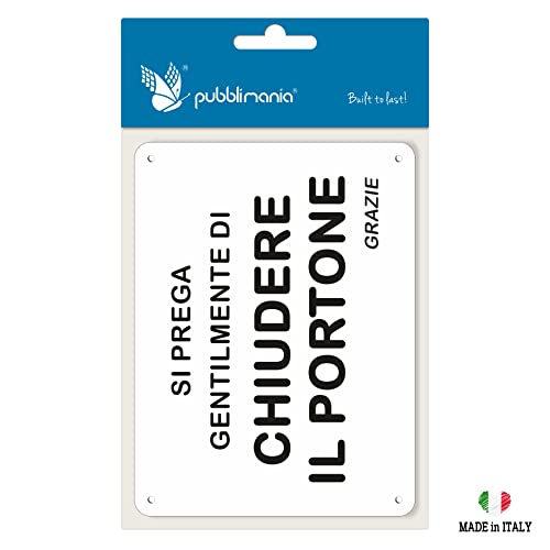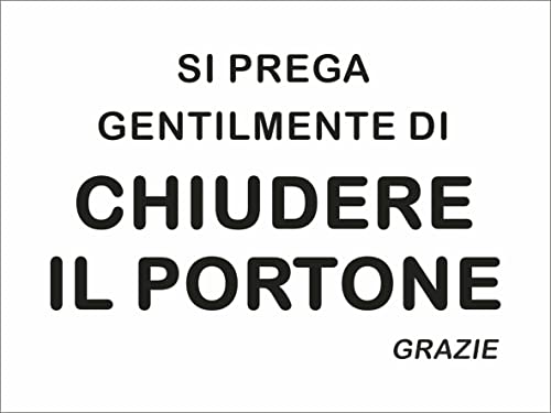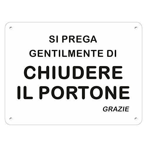 Pubblimania CHIUDERE SEMPRE IL PORTONE Cartello in Alluminio ottimo per uso esterno, spessore 3 mm (Chiudere Portone Bianco cm 15x20)