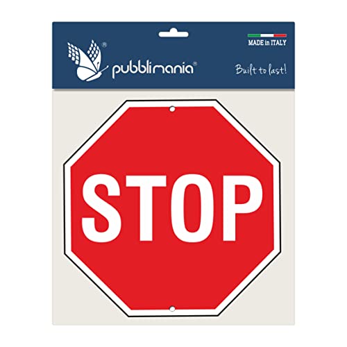 Pubblimania STOP cartello segnale in alluminio metallo ottagono 3 mm per esterno cm 30 x 30 (Stop)
