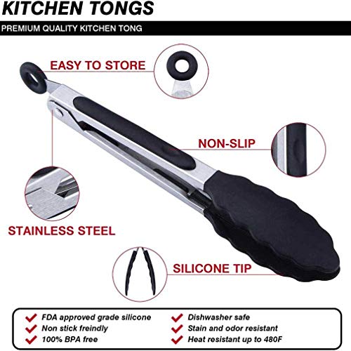 Design ergonomico: impugnatura ergonomica antiscivolo, impugnatura robusta, facile controllo e presa delle cose, consente l'uso con una sola mano. Le pinze più corte da 7 "sono ideali per friggere, lanciare e servire insalate o afferrare mais dolce fresco fresco da un pentola d'acqua bollente e molto altro ancora!
