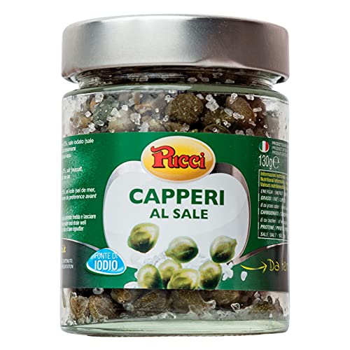 Pucci Capperi al Sale Conserva Condimento per Insalate Piatti di Carne o Pesce - Vasetto da 130g