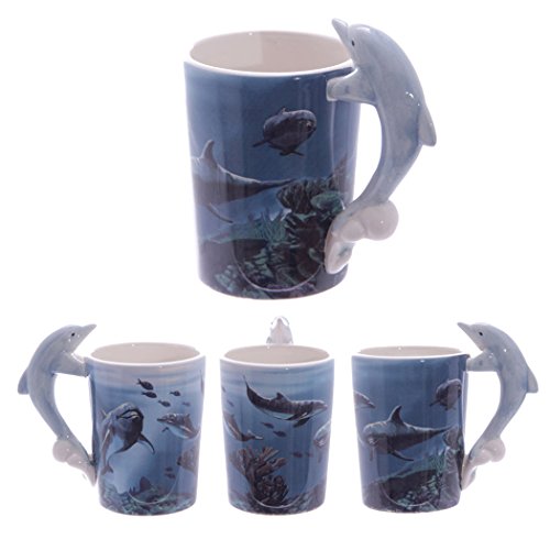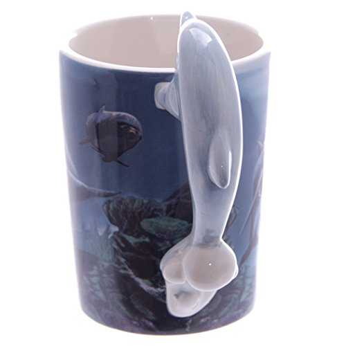 Puckator 50268 - Tazza con manico a forma di delfino, motivo stampato: mondo sottomarino