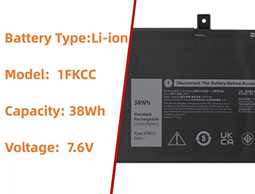 PUGASR 1FKCC Laptop Batteria Compatible with Dell Latitude 7200 7210 2-in-1 Series Dell T04J T04J001 Series 09NTKM 9NTKM 0D9J00 D9J00 KWWW4 7.6V 38Wh