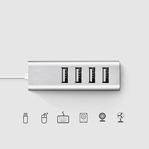 PUGO TOP Hub 4 porte USB 2.0 in alluminio premium con cavo schermato - Argento