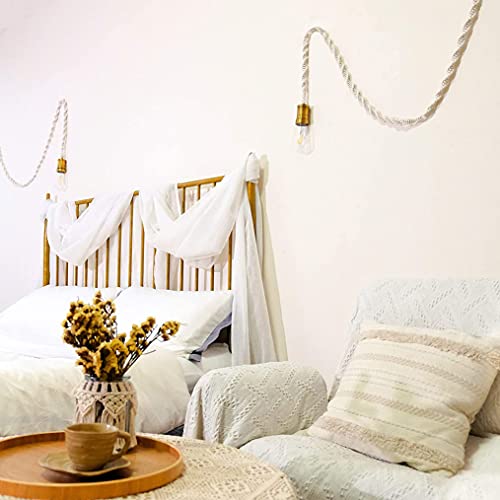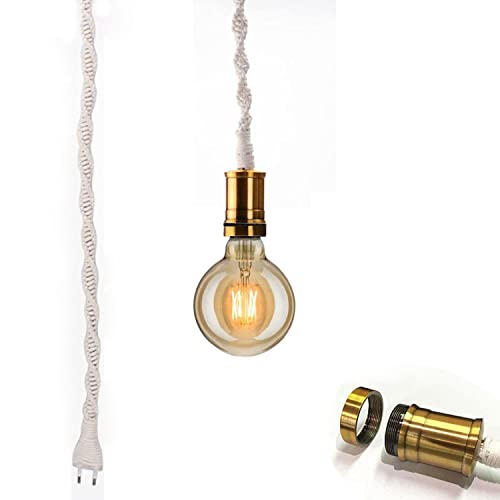 Puhui Lampada a sospensione con interruttore e spina, cavi intrecciati manualmente, lampada per camera da letto, sala da pranzo, lampade da parete, accessori fai da te, attacco E27