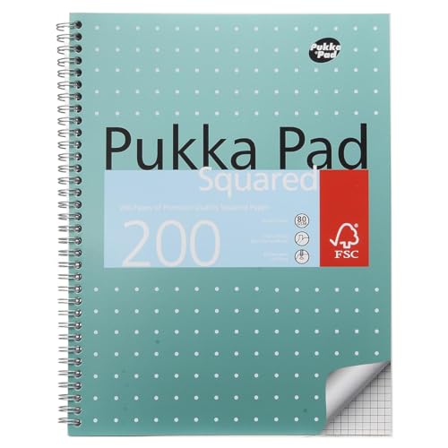 Il pad quadrato Pukka con rilegatura a filo è un pad di qualità che si trova piatto per facilità d'uso e le pagine sono perforate per una facile rimozione della carta. Dispone di 200 pagine di carta a griglia da 80 g/m² da 5 mm. Questa carta è ideale per disegnare grafici e tavoli ed è perfetta per gli studenti.