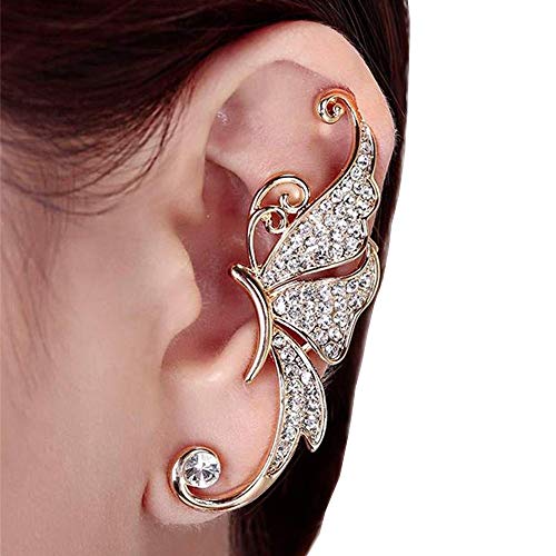 N-K PULABO - Orecchini a clip da donna, con ali di cristallo a forma di farfalla, colore bianco, di qualità adorabile e durevole alla moda