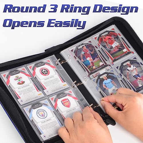 【Facile da trasportare】 - Il nostro album di carte da calcio progettato con cerniera, può essere aperto e chiuso facilmente, fornisce un'ottima protezione per le tue carte Il design del cinturino a mano è molto comodo da trasportare, può portare la tua carta collezionabile Football ovunque.