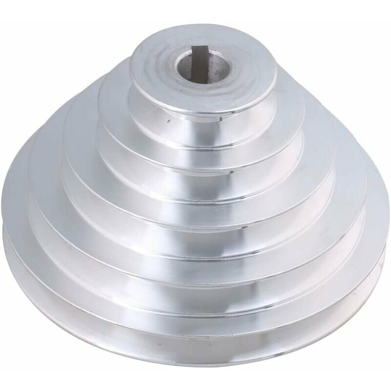 Per la distribuzione della cinghia trapezoidale di tipo A. Il design a 5 livelli può soddisfare diverse esigenze di velocità. Puleggia a 5 livelli per cinghia trapezoidale di tipo A l'albero motore . Diametro esterno 5 livelli: 54 mm, 76 mm, 102 mm, 128 mm, 150 mm.