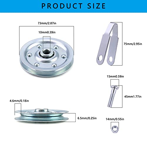 PULEGGIA A 360 GRADI: riceverete 2 puleggia fitness, il diametro esterno è di 76 mm, il diametro interno è di 10 mm, la portata è di 215 kg, anello girevole a 360 gradi, che può impedire che le corde, i cavi, i fili si aggroviglino.
