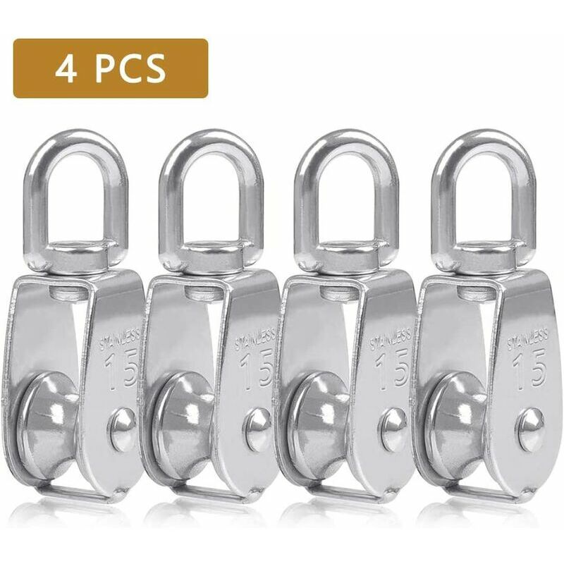 Puleggia singola M15 - Ben costruita in acciaio inossidabile 304, è conveniente per la vita e il lavoro Design con rotazione a 360 gradi Evita di annodare la fune/cavo/cavo, che è facile da installare e utilizzare, semplifica il tuo lavoro.Ruota lisciaIl nostro prodotto è arrugginito prova e resistente alla corrosione con liscia scorrevolezza. Dotato di capacità per impieghi gravosi con un design molto pratico e una struttura super resistente Puleggia in acciaio inossidabile 304 per interni ed esterni Progettato per l'uso con cavo / cavo / filo per applicazioni interne ed esterne. Adatto a grandi kayak, canoe, fabbriche, costruzioni, spedizioni, miniere, case. Perfetto per garage, carico di macchine, tende, stendibiancheria, sistema di pulizia del cane, ecc. Specifiche: Materiale: acciaio inossidabile 304. Ruota in acciaio inossidabile: 60 mm x 25 mm x 6 mm (lunghezza x larghezza x spessore). Si prega di vedere la quarta immagine) La confezione include: 4 pezzi x M15 blocco puleggia