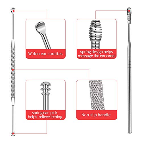 【Facile da controllare Uso pulito】Se usati correttamente per uso personale e domestico, i nostri strumenti per la rimozione delle orecchie sono assolutamente sicuri. Durevole garantendo una buona igiene dell'orecchio. Le maniglie sono progettate per un design sicuro e antiscivolo. Igienizza con sapone, acqua o qualsiasi soluzione disinfettante e riutilizzalo semplicemente.