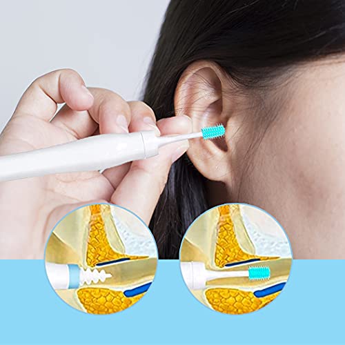 Pulisci Orecchie, 3 in 1 Pulitore Orecchie con 16 testine di Ricambio, Spirale Flessibile e Kit di Pulizia Orecchie in Silicone Morbido per Adulti Bambini Umani(bianco)