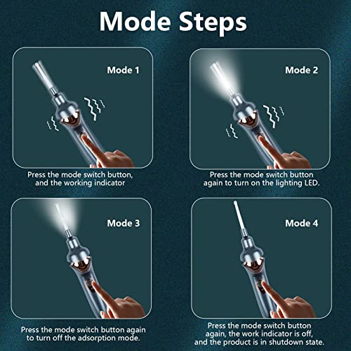 【Design in silicone e nessun rumore】 Il nostro cucchiaio per le orecchie progettato è in silicone per tutto il corpo, ti sentirai molto a tuo agio e al sicuro quando lo usi. La potenza di aspirazione dello strumento per la rimozione del cerume ha 5 livelli di aspirazione da debole a forte.