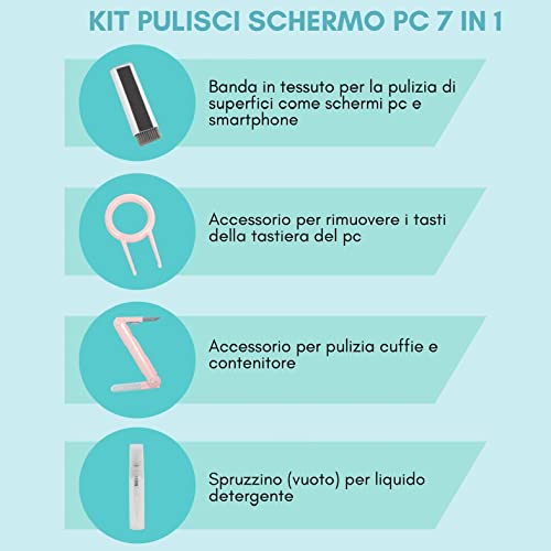 Kit Pulisci Schermo Pc 7 in 1 Spazzola Pulisci tastiera kit Pulizia Airpods Pennello Più Accessori per la Pulizia Monitor Pc (Blu)
