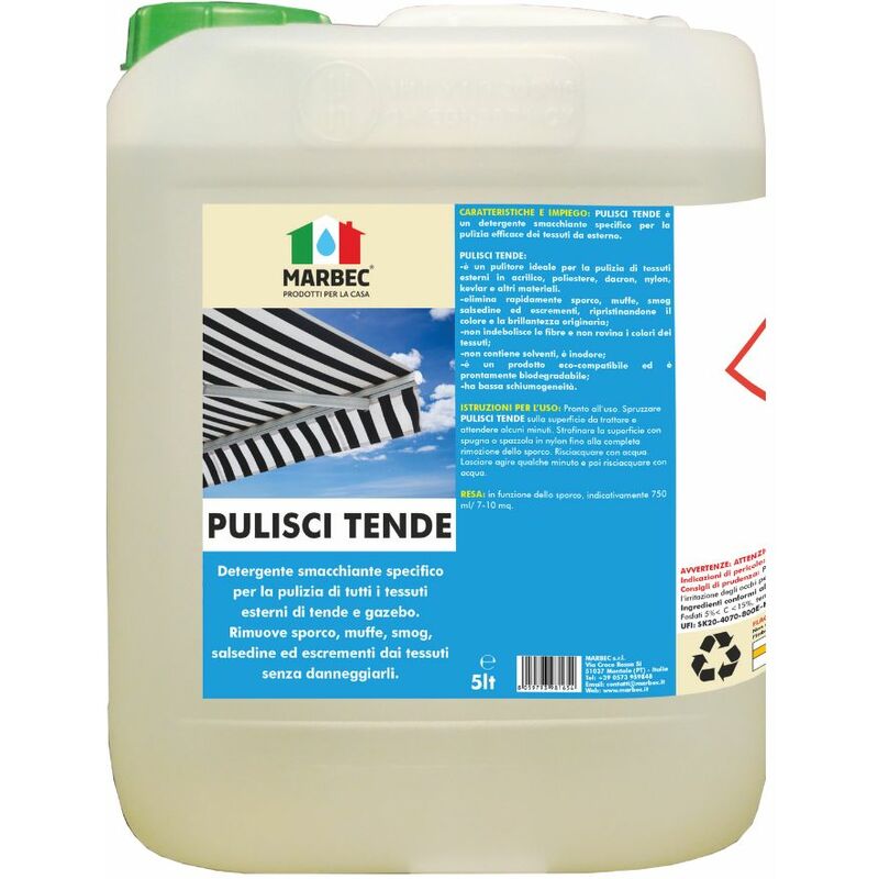 Caratteristiche e impiego: PULISCI TENDE è un detergente smacchiante specifico per la pulizia efficace dei tessuti da esterno. PULISCI TENDE: è un pulitore ideale per la pulizia di tessuti esterni in acrilico, poliestere, dacron, nylon, kevlar e altri materiali;