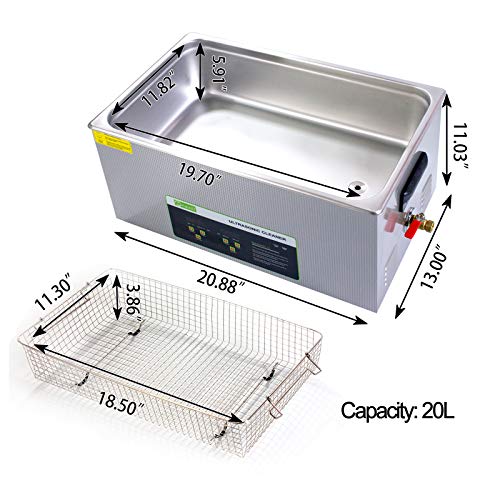 Pulitore a ultrasuoni professionale a funzionamento digitale 20 l, con cestino e timer, per la pulizia, dispositivo di tatuaggio, carburatore, occhiali, gioielli, dentiere, verdure, frutta, ecc.