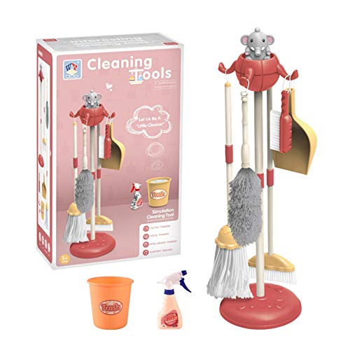 Set di pulizia per bambini - Giocattolo da finta di 8 pezzi con supporto per elefante, spazzola telescopica per bambini,scopa,scopa,paletta,spolverino,spazzola, giocattolo per bambini dai 3 anni in su
