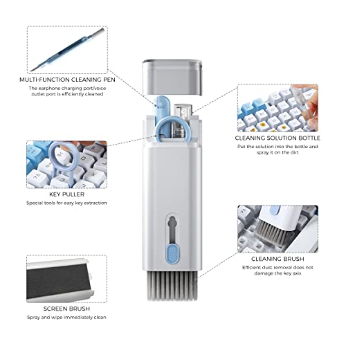 Set di 1 kit di pulizia 7 in 1, con 1 custodia nera, spazzola di pulizia multifunzione, detergente portatile, adatto per cuffie, tastiere, telefoni cellulari, computer, fotocamere (blu)