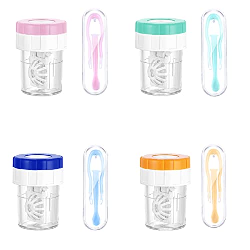 Pulizia Lenti Contatto, Senteen 4 Pezzi Custodia per Lenti di Pulizia e 4 Pezzi Pinzette e Ventosa Lenti a Contatto Set Scatole Lenti Contatto Portatile per Casa Viaggio (4 Colori)