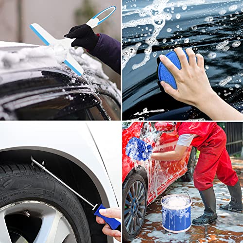 Kit di Pulizia Professionale per Auto, 17 Lavaggio Esterno e Interno con Spazzola per Ruote, Secchio, bocchette d'Aria, Guanti per Lavaggio, spugne, Raschietto per finestrini, Spazzola per Dettagli