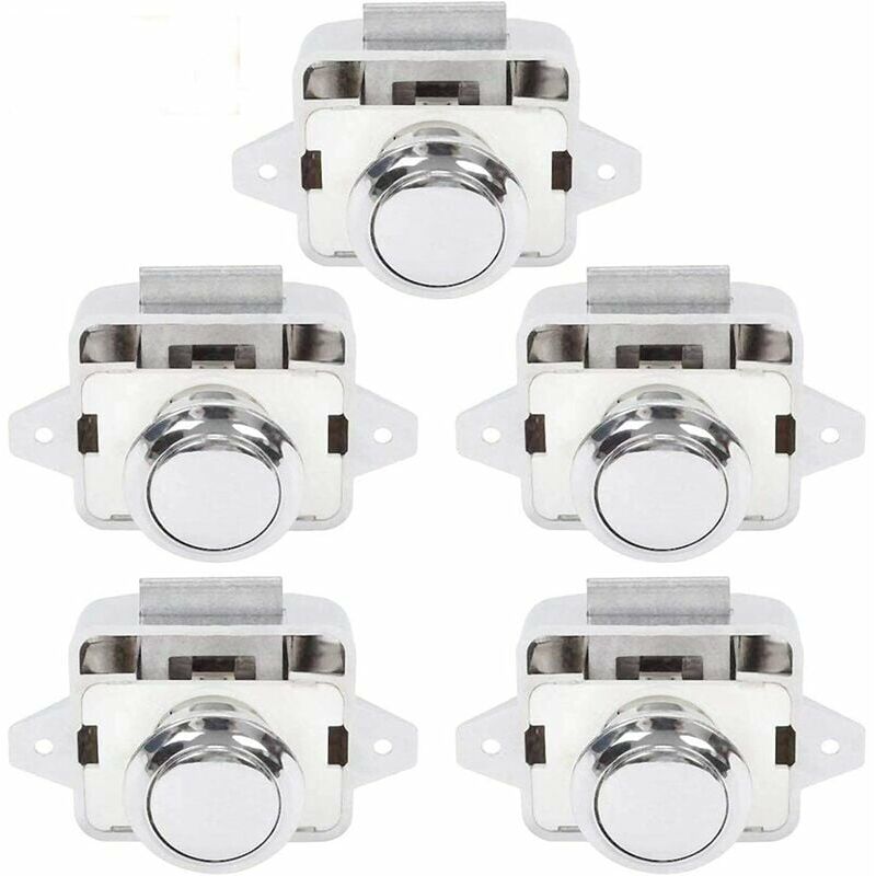 Dimensioni: le serrature richiedono un diametro del foro della porta di 26 mm e uno spessore del pannello da 15 mm a 18 mm. Si prega di misurare il diametro e lo spessore del mobile prima dell'acquisto. Materiale: principalmente plastica ABS, più resistente, meno peso. La superficie è lucida e non si sbiadisce facilmente. Compatibilità: adatto per la maggior parte dei mobili per yacht e cassetti di roulotte, camper e furgoni. Evita che la porta interna dell'armadio si apra automaticamente durante il processo di guida di una roulotte o di uno yacht. Facile da usare: basta premere il pulsante senza chiave per mantenere la porta dell'armadio aperta e chiusa. Premi di nuovo per aprire la porta dell'armadio. Elenco dei pacchetti: 5 serrature a pulsante. Ogni chiusura è dotata di 4 viti e 1 piastra di riscontro. A causa di fattori quali la misurazione manuale e le differenze di visualizzazione, potrebbero esserci lievi differenze tra i prodotti e le singole immagini, ti prego perdonami.