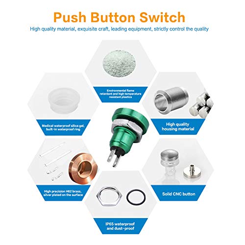 Pulsante istantaneo Keenso Interruttore a pulsante momentaneo 1A 24V Mini in lega di zinco impermeabile Adatto per foro di montaggio da 8 mm(Green)