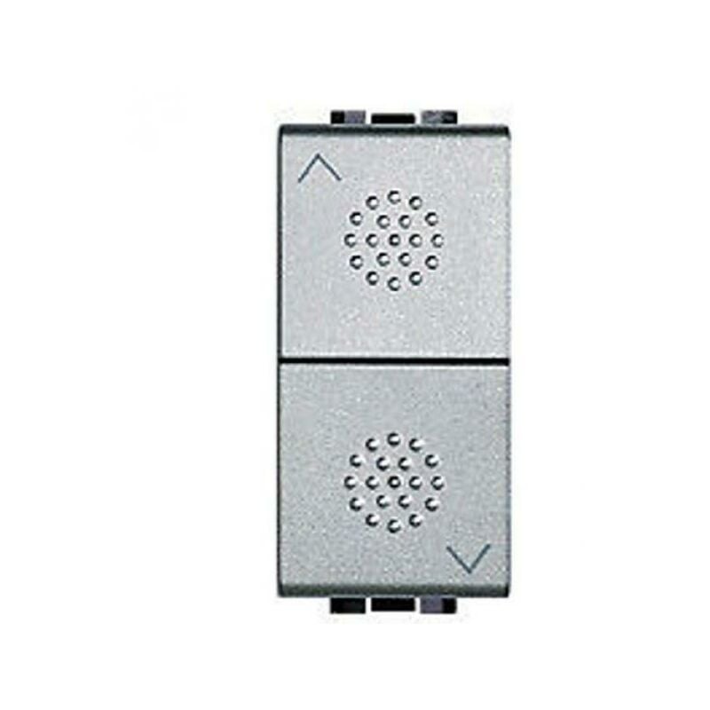 Pulsante doppio 1P NO + 1P NO 10A - 250 Vac interbloccatoScheda tecnica: Composizione Elemento di base Modello pulsante unipolare Funzionamento Basculante Blocco elettrico e meccanico no Comando meccanico (pulsante) sì Comando elettronico (Touch) no Metodo di montaggio Incasso a parete Materiale Plastica Qualità del materiale Termoplastico Privo di alogeni sì Superficie Verniciato Tipo di superficie Lucido Tipo di fissaggio Altri Colore Alluminio Numero RAL (affine) 7035 Trasparente no Con casella di testo no Adatto per grado di protezione (IP) IP20 Corrente nominale 10 A Tensione nominale 250 V Numero di tasti 2 Numero di poli 1 polo