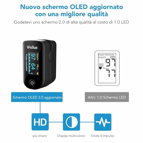 【VIENE FORNITO CON ACCESSORI】 Include 2 X BATTERIE AAA che ti permetteranno di usare il pulsossimetro appena fuori dalla scatola e un LANYARD per comodità. Viene fornito con 1 anno di garanzia.
